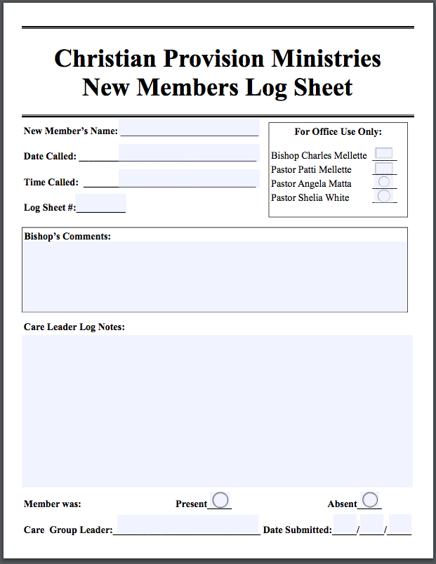 Click here to download the Print Version of the “New Member Log Sheet.”